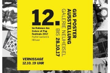 Vernissage mit Get Together und Musik zur Ausstellung „Gig Poster“ der HBK-Studierenden, Donnerstag, 12. Oktober, 19.00 Uhr, Galerie Neuheisel, Johannisstraße 3A, Saarbrücken.